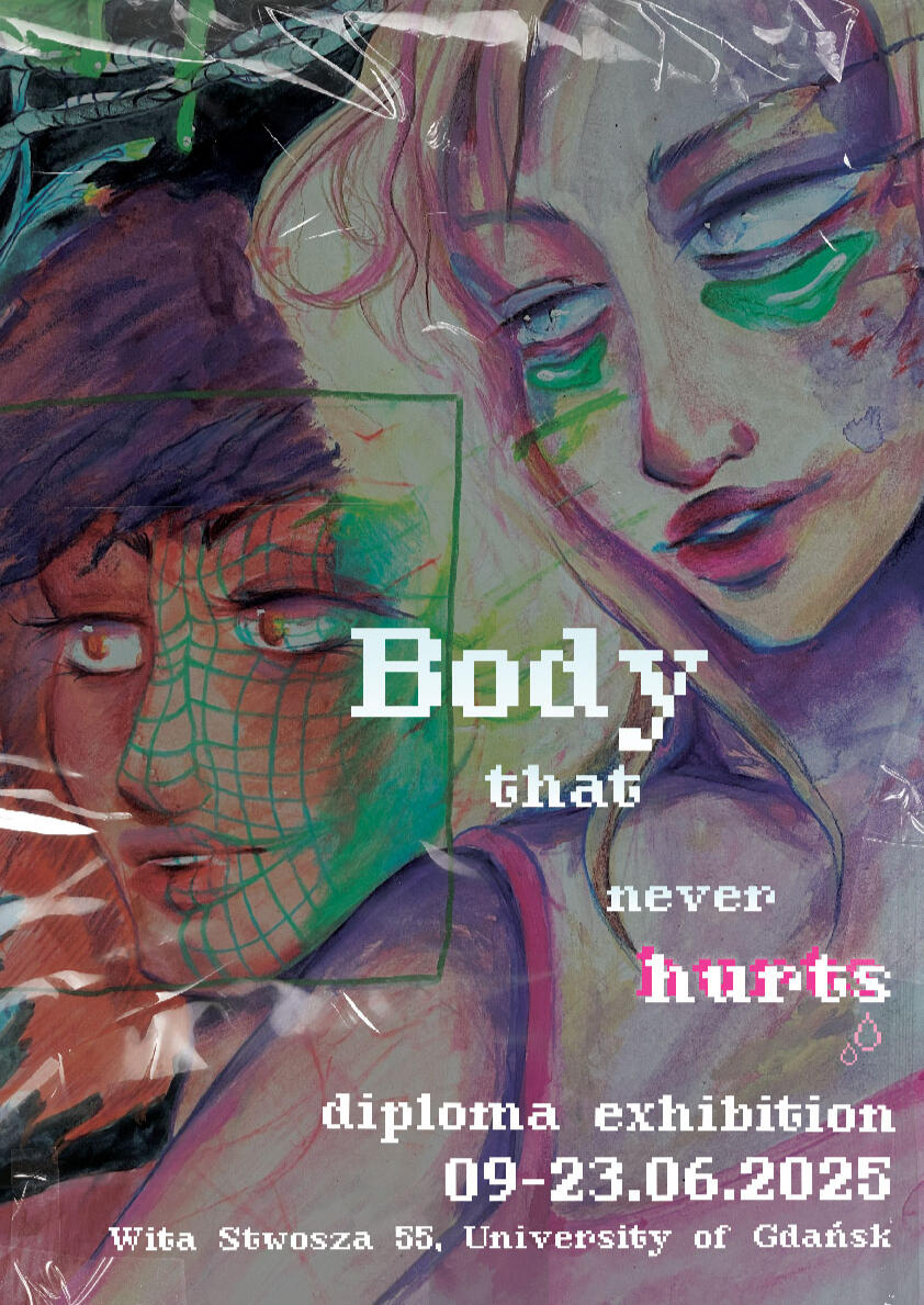 Choć tego typu treści mogą mieć swoje zalety, problem często tkwi w przytłaczającym sposobie, w jaki są one przedstawiane. Twórcy niejednokrotnie dopuszczają się szerzenia niezweryfikowanych informacji, nadużywają lokowania produktów, a co gorsza – ich przekaz może trafiać bezpośrednio w poczucie wartości i bywa często szkodliwy – zwłaszcza w stosunku do pozostawionej bez nadzoru młodszej widowni.Zbiór czternastu oryginalnych prac autorstwa Mii Pająk, studentki Kulturoznawstwa na Uniwersytecie Gdańskim, w alegoryczny sposób ukazuje problemy obecnego krajobrazu cyfrowego. Autorka przedstawia postaci posiadające wstręt do własnej osoby, z zaburzeniem swojego własnego poczucia ‘ja’, jednocześnie bawiąc się kolorem i symbolami, które ukrywają dużą część ich lęków przed okiem widza – podobnie jak w świecie mediów społecznościowych, gdzie rzadko dostrzegamy ciemniejszą stronę treści, które (często bezrefleksyjnie) konsumujemy. Artystka łączy styl komiksowy z bardziej realistycznymi elementami, by jeszcze mocniej oddać granicę między tym, co sztuczne (stylizowane, wyreżyserowane i wirtualne), a tym, co rzeczywiście jest „prawdziwe”.